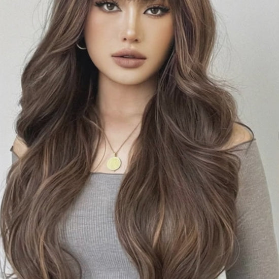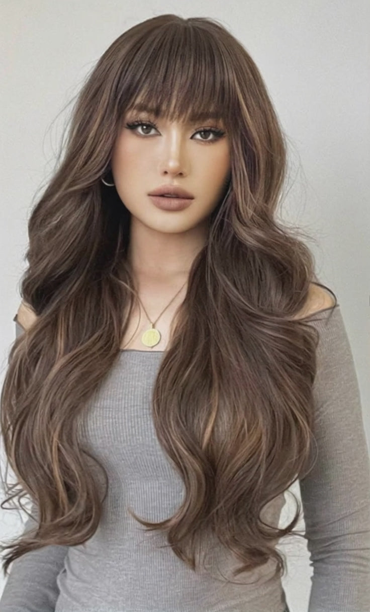 The Royal Amber Crown is regal allure in every strand — 26+ inches of long body waves in brown mixed blonde with deep dark roots, finished with soft bangs for a face-framing, seductive glow. At a high 180% density, it’s voluminous, luxurious, and radiates power with every movement.