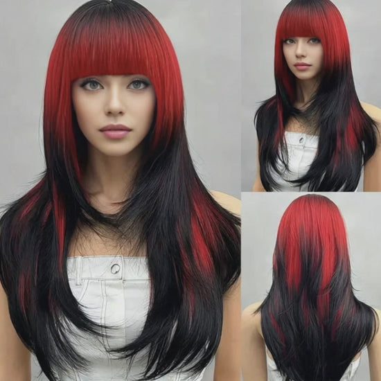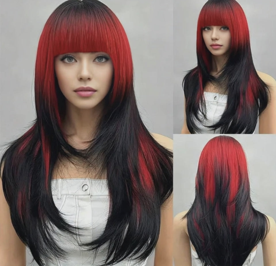 The π₯ Scarlet Devil Crown ignites any look with its fierce blend of deep black and fiery red, flowing in sleek, straight layers over 26 inches long. Crafted from high-temperature, heat-resistant synthetic fibers, this crown delivers bold color, silky texture, and all-day comfort. Perfect for daily wear, cosplay, parties, or unleashing your dark, seductive side, itβs a showstopper that commands attention.